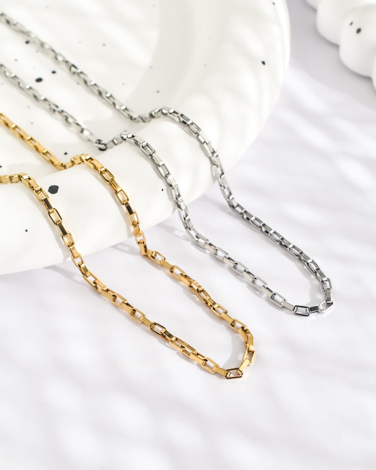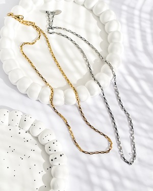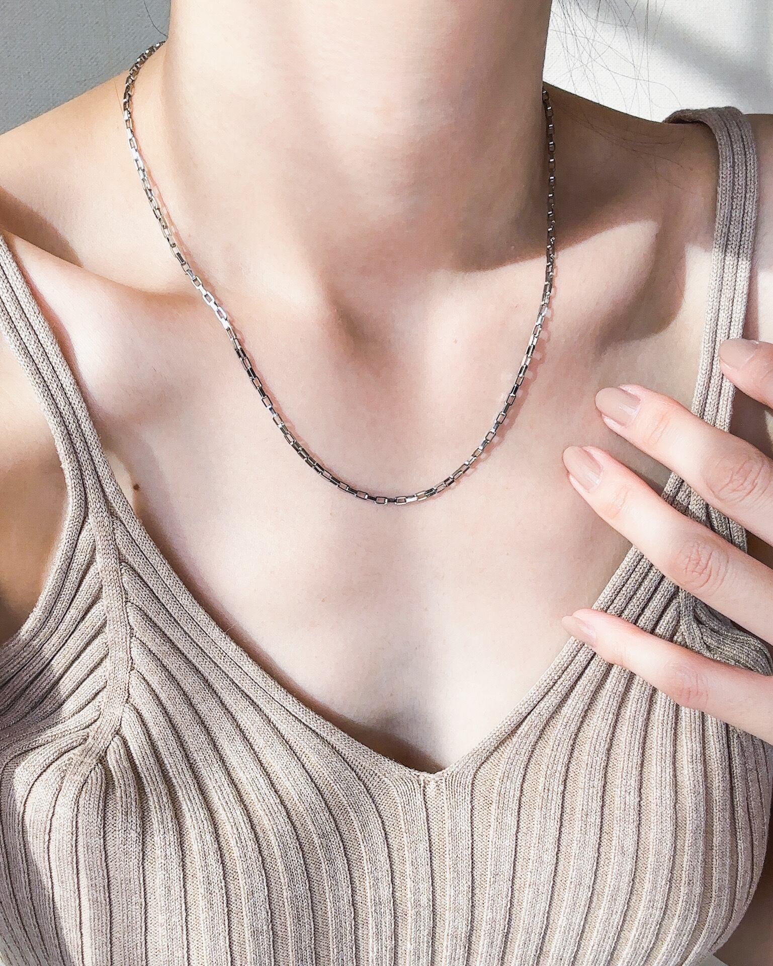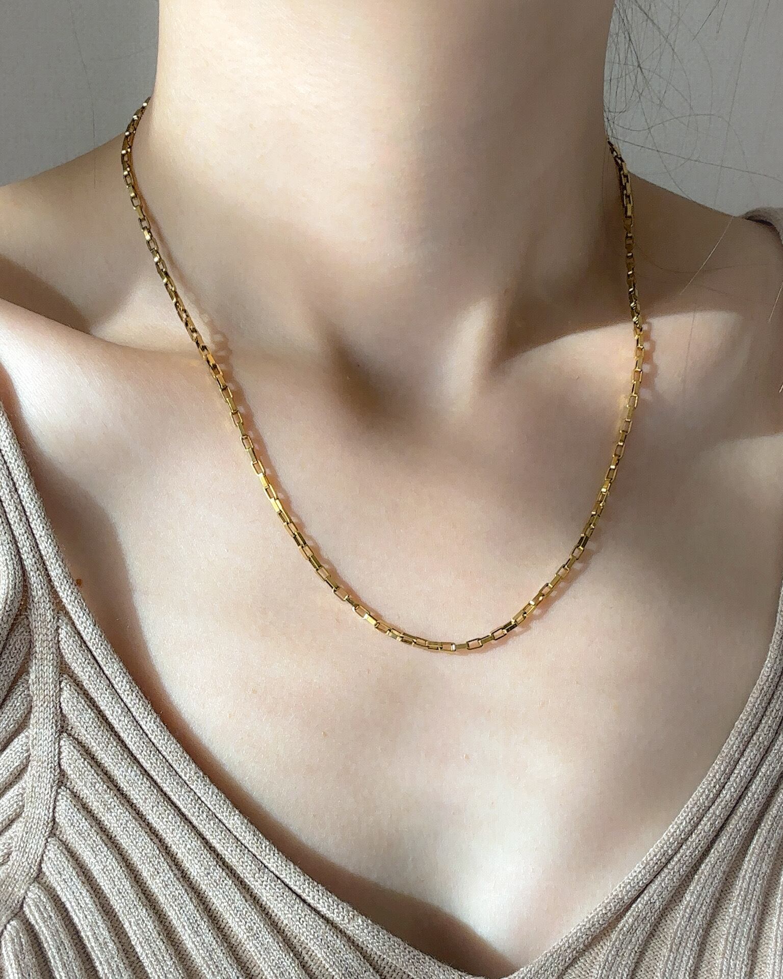 kyanzy LOGO ボックスチェーンネックレス 【素材】316Lステンレス 【カラー】ゴールド・シルバー 【サイズ】チェーン幅2mm 【チェーンサイズ種類】 ・45㎝ ・50㎝ 金属アレルギーを起こしにくく 水濡れ等による変色も少ないステンレス素材となっております。